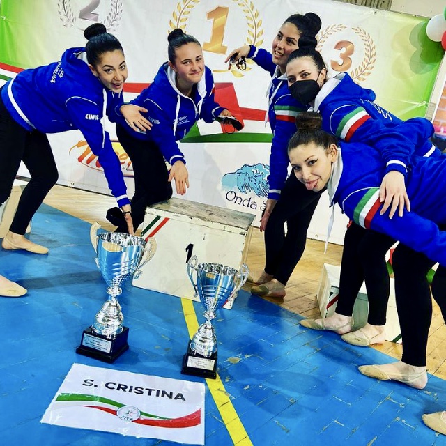 Le due squadre di Serie A hanno confermato il posto in classifica sigillando la loro posizione nazionale: medaglia d’oro per il gruppo artistico che riceve il titolo di campione italiano 2022 (Antonioli Carolina, Alliata Sara, Fornara Alessia, Fornara Silvia, Mazzola Noemi, Mazzola Sara, Mancuso Giorgia, Simoni Giorgia, Arbellia Melissa, Besuzzi Sara, Carini Elisa, Ianni Alessia, Ravedoni Elena, Alliata Giorgia, Bertona Giulia, Valloggia Nicole, Valsesia Nives, Marcon Margherita, Caviggia Alessandra, Di Capua Simona) e medaglia d’argento per il team senior (Antonioli Carolina, Alliata Sara, Fornara Alessia, Fornara Silvia, Mazzola Noemi, Mazzola Sara, Mancuso Giorgia, Simoni Giorgia).