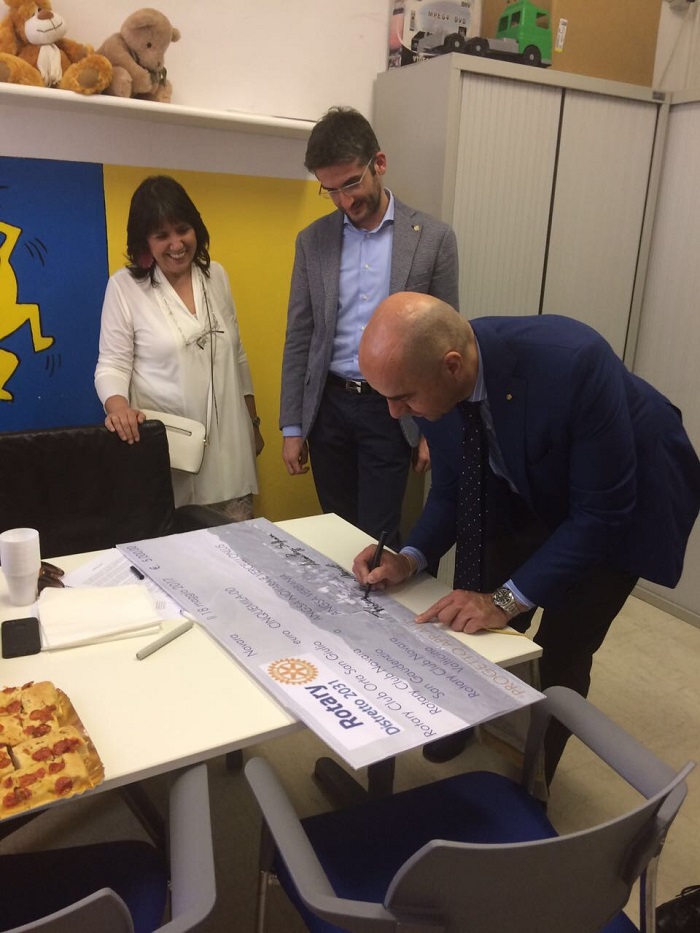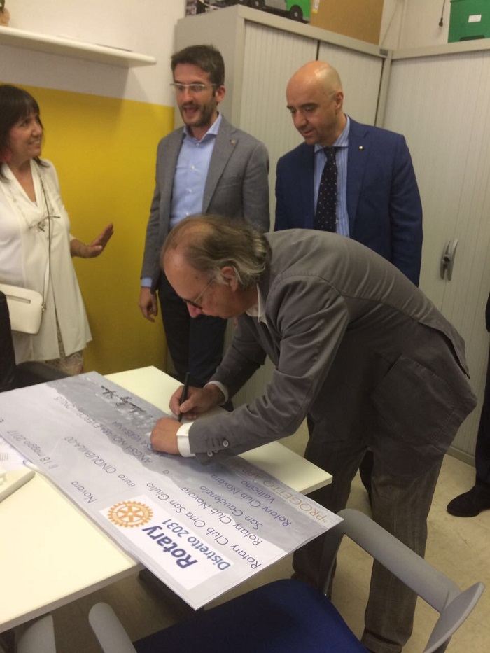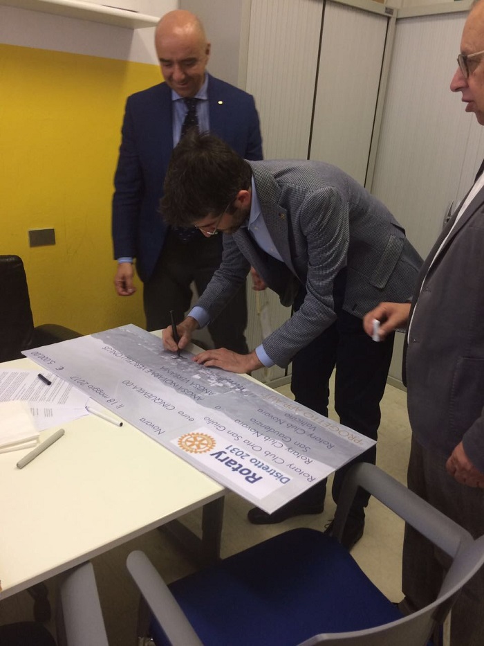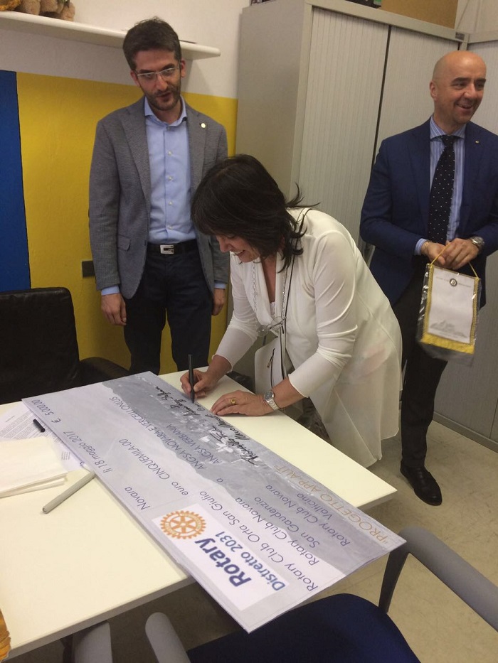 NOVARA- 20-05-2017- Lo scorso giovedì 18, nel pomeriggio, presso la sede Angsa, acronimo di Associazione nazionale genitori soggetti autistici, in corso Risorgimento 237, si è svolta la consegna di un assegno di 5 mila euro da parte di Rotary club Orta San Giulio, Novara San Gaudenzio e Novara Val Ticino. La somma servirà per sostenere parte dei costi delle terapie a bambini colpiti da autismo sia per organizzare corsi di formazione per gli operatori. Erano presenti alla consegna dell’assegno il presidente nazionale Benedetta Demartis, la responsabile per il Piemonte Priscila Pasino, i presidenti dei distretti Rotary Orta San Giulio, Riccardo Franchi, di Novara San Gaudenzio. Antonio Poggi Steffanina e Novara Val Ticino, Angelo Danieli.