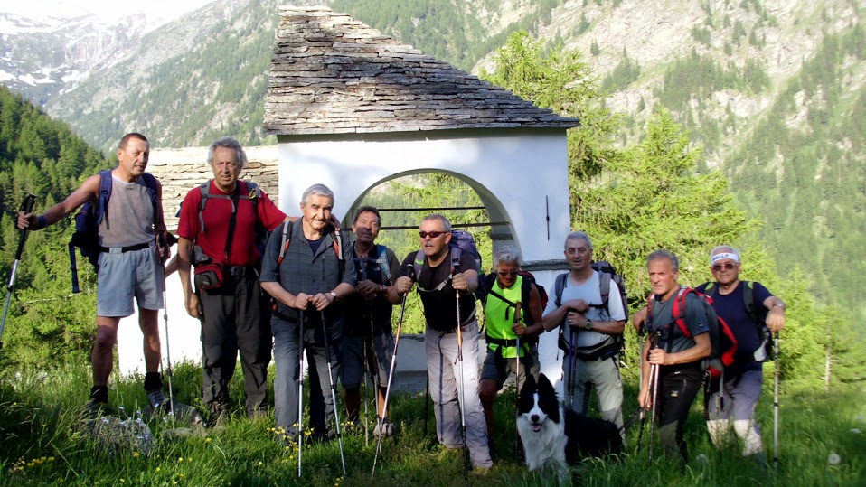Un passo indietro, a fine primavera 2014, per un'escursione piuttosto lunga, soprattutto in discesa, ma di grande soddisfazione. Giornata splendida, un po' troppo calda per essere vera: infatti, nel primo pomeriggio, una piccola nuvola “di Fantozzi” colpirà i sei coraggiosi diretti a Gondo. Dal parcheggio di Gabi, 1228, partiamo in undici con Book, il Border Collie fidanzato della piccola Asia. Gli altri due cani del gruppo, Asia e Willy, non sono in regola con il passaporto, cioè la vaccinazione anti-rabbia.