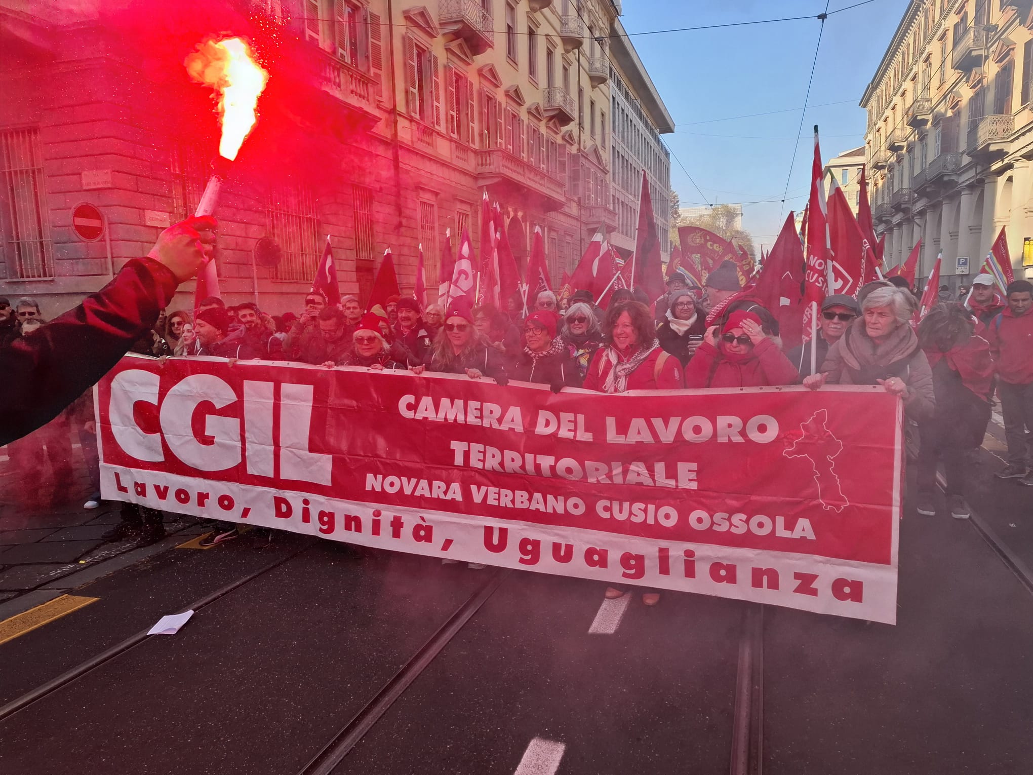 TORINO - 29-11-2024 -- A Torino è in corso la manifestazione di Cgil e Uil proclamata in occasione dello sciopero generale contro la politica economica del Governo. Ad una prima stima degli stessi sindacati sarebbe altissima l'adesione del manifatturiero (Lagostina 80%), alta nell'edilizia, manca ancora il dato del terziario mentre dal settore pubblico si parla di segnali incoraggianti a Novara ad esempio, è al 100% l'adesione al centro prelievi dell'ospedale. Come partecipazione alla manifestazione fonti sindacali parlano di 20mila presenze, oltre 600 da VCO e Novarese. I deti definiti nelle prossime ore.