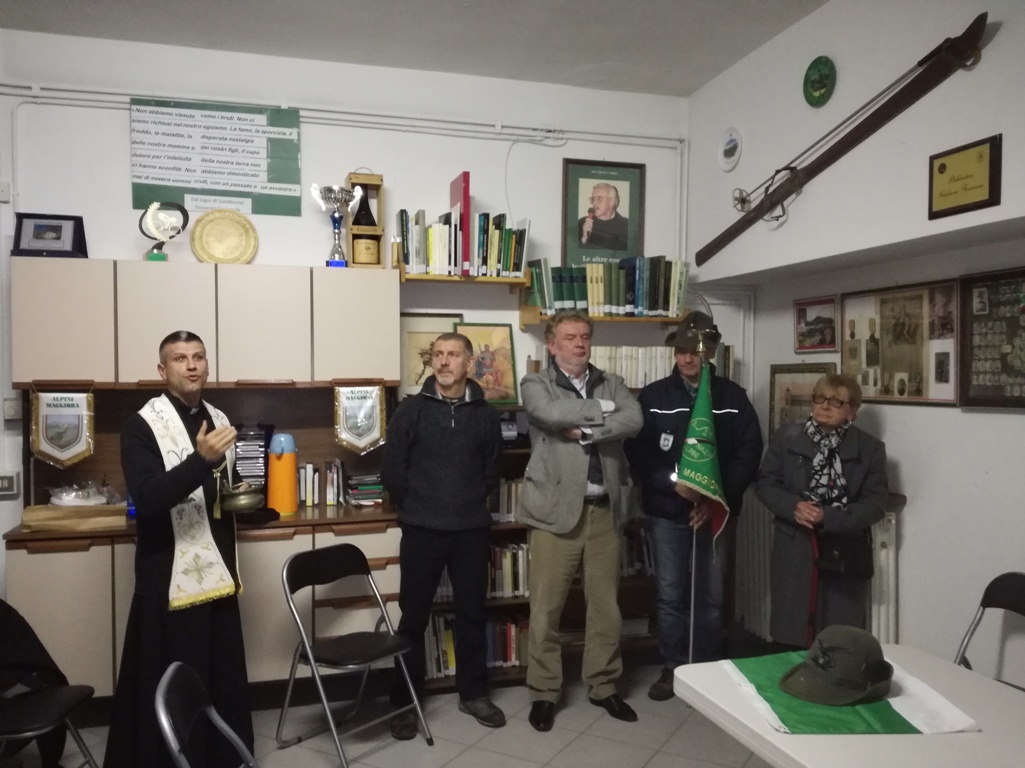 Maggiora hanno inaugurato domenica 19 novembre la biblioteca “Giuliano Fornara”, intitolata al loro socio deceduto lo scorso anno. Alla cerimonia erano presenti la vedova di Fornara, Lodovica, accompagnata dai figli Lodovico e Marco con le rispettive consorti. Sono intervenuti anche il sindaco di Maggiora Giuseppe Fasola, il parroco don Salvatore Gentile, il presidente della Sezione Ana Cusio Omegna Euridio Repetto, accompagnato dai responsabili del Centro studi Lino Cerutti e Aldo Lanfranchini (sezione Valsesiana), numerosi alpini e amici degli Alpini di Maggiora e Ghiffa: questi ultimi hanno preso parte al mattino alla commemorazione di don Franco Mora, parroco di Ghiffa e in seguito di Maggiora. La figura di Giuliano, la sua vasta cultura, la sua passione per la lettura, il suo impegno a favore della comunità maggiorese sono stati ricordati con accorate parole dal sindaco e dal parroco, il quale ha benedetto la targa, coperta da un drappo tricolore, che i familiari hanno scoperto al termine della cerimonia. Parole di apprezzamento e incoraggiamento a proseguire nell'impegno culturale sono venute dai responsabili del Centro studi, Cerutti e Lanfranchini, i quali per l'occasione hanno donato libri sugli Alpini cusiani e valsesiani , e dal presidente Repetto, che ha consegnato al Gruppo di Maggiora il guidoncino della Sezione. Il capogruppo degli Alpini di Maggiora, Paolo Jean, ha ringraziato le numerose persone che con i loro lasciti hanno permesso la nascita della biblioteca: al primo lascito della famiglia Cardillo nel 2011, si sono aggiunti quelli delle famiglie di Giancarlo Cavalieri, di don Franco Mora e di Giuliano Fornara, nonché offerte da privati cittadini, quali Elena e Franco Zanetta, Antonio Manfredini e altri; si è arrivati, così, a oltre 300 libri (lelenco è consultabile nel sito www.alpinimaggiora.com), disponibili per consultazione o prestito aperti a tutti.