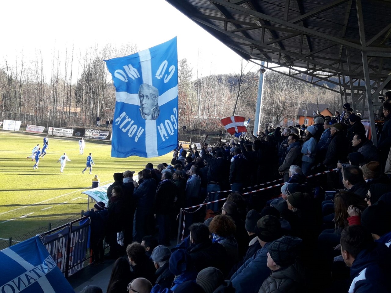 fa 17, ovvero le vittorie consecutive in casa nel 2017, perde la gara con il Como e perde la vetta della classifica da quando è iniziato il torneo. Puo’ solo consolarsi con l’incasso perché da tempo non si vedeva tanta gente al D’Albertas. Vince il Como che si rilancia in classifica che porta nel gruppone anche la Pro Sesto (vincente a Voghera) e la Caratese, mentre scappa la Caronnese (3-0 a Borgaro). Partita nervosa e dai contorni maschi, con il Como che parte subito bene con Baradaschia che impegna dalla distanza Gilli e pronta risposta al 13’ di Capogna (alto di testa). Como che cerca il successo, mentre il Gozzano appare attendista. Nei cusiani manca Lunardon , letale nelle ripartenze, un’assenza più importante delle due comasche (Sentinelli e Cecconi) che si rivelerà determinante nell’economia del match. Infatti Capogna si ritrova a giostrare spesso contro due difensori lariani, mentre Perez agisce troppo distante dalla porta e Vita, preferito a Gulin che forse avrebbe dato maggior fantasia alla squadra, finisce per pestare i piedi al centroavanti di casa e risulta inconcludente. Nell’economia della gara pesa poi la brutta giornata di Petris, pasticcione in difesa, poco fluidificante in attacco. E cosi’ Guitto si ritrova a predicare spesso nel deserto: con gioco orizzontale o lunghi lanci. Il Como è più intraprendente. Al 20’ Molino impegna dalla distanza Gilli e al 30’ Fall puo’ raddoppiare, ma il portiere è bravo a chiudergli lo specchio in uscita. Al 40’ il Como raggiunge il vantaggio, tutto sommato, meritato: corner di Gentile, gigantesca mischia in area, risolve Molino con un colpo da biliardo che si infila tra una salva di gambe. La ripresa inizia con il Gozzano subito a reclamare un rigore con Guitto: verrà ammonito, ma Fall in contropiede sciupa il 2-0. Al 53’ arriva il pari della capolista: Capogna raccoglie un pallone in area, lo difende spalle alla porta e poi calcia forte ,ma il portiere ospite si fa sorprendere sul proprio palo ed incassa l’1-1. Ora il Gozzano vorrebbe capovolgere le sorti del match approfittando di un calo fisico dei lariani che hanno giocato il recupero in settimana, ma al 60’ Fall sorprende la distratta difesa di casa, salta Mikhaylovskiy e batte Gilli. Manca mezz’ora, ma non succederà più nulla. Il Gozzano si sgonfia, attacca per vie centrali senza costrutto, il Como si mette a 5 in difesa e Capogna non ha più spazi, mentre Vita continua a sbattere contro il muro lariano. Il Como gioca di mestiere, mette in apprensione la retroguardia di casa con Gobbi e chiude senza affanni se si eccettua qualche mischia da calcio piazzato. Caronnese che sale a 38, stacca il Gozzano a 35, insidiato da Pro Sesto 32, Como 30, Caratese 27. Il campionato è aperto. Ora il Gozzano deve tornare al successo a Tortona, prima di ricevere la Caronnese al D’Albertas.