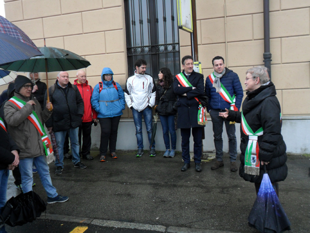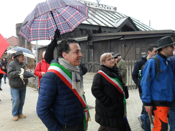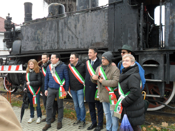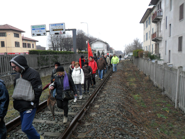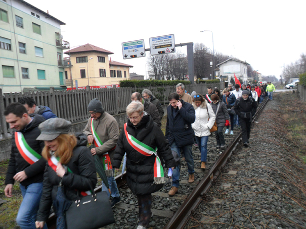nonostante la pioggia, hanno marciato a piedi da Gattinara a Romagnano Sesia per chiedere la riapertura della linea ferroviaria Arona – Santhià. La camminata simbolica sui binari nel tragitto tra le due stazioni ferroviarie è stata organizzata dall’ “Associazione ferroviaria internazionale Torino Svizzera” e dal “Comitato per la riapertura dell’Arona- Santhia” con la partecipazione di alcuni rappresentanti del neo-costituito “Comitato dei sindaci per i pendolari e il miglioramento della qualità dei treni” con sede ad Arona. Tra di essi il sindaco di Arona Alberto Gusmeroli, il sindaco di Gattinara Daniele Baglione, il sindaco di Romagnano Sesia Cristina Baraggioni, il sindaco di Varallo Sesia Eraldo Botta, i primi cittadini di Lozzolo, Lenta, Arborio e il vice sindaco di Rovasenda, oltre a tanti cittadini. All’arrivo sotto la pioggia alla stazione di Romagnano, ha preso la parola Baraggioni: "volevo ringraziare tutti i partecipanti, tutte le autorità che hanno partecipato a questa marcia e soprattutto l’ “Associazione ferroviaria internazionale Torino-Svizzera” che ha promosso questa marcia dal valore altamente simbolico ma che deve aiutarci. Aiutateci a mantenere queste condizioni attraverso un trasporto pubblico locale efficiente, più economico, più sostenibile e la ferrovia è sicuramente il migliore". Ha poi aggiunto Gusmeroli: "Abbiamo costituito questo Comitato dei sindaci per i pendolari e il miglioramento della qualità dei treni, siamo in tutto 33 sindaci. Qui abbiamo quelli di Romagnano, Gattinara, Varallo e anche altri sindaci che, pur non avendo una stazione, hanno voluto simbolicamente darci una mano. Il Comitato che è appena nato vuole darci una mano per migliorare la qualità del servizio ferroviario". Il neo deputato ha sottolineato la linea Arona-Santhià deve essere vista come trait d’union tra la Svizzera, Torino e la Francia: "Oggi in tantissimi, malgrado la pioggia, abbiamo camminato sui binari dalla stazione di Gattinara alla stazione di Romagnano Sesia, simbolicamente abbiamo mandato un messaggio forte e chiaro e nei prossimi mesi continueremo a cercare di ottenerne la riapertura come peraltro della Novara Varallo". Infine, ha preso la parola Achille Chiari, presidente della “Associazione ferroviaria internazionale Torino Svizzera”, il quale ha spiegato che lo scopo dell’associazione è quello di favorire la riapertura di questa tratta come sezione di un importante collegamento internazionale che collega Torino alla Svizzera. Fino a oggi sono state raccolte oltre 1.400 firme; per chi vuole sottoscrivere la petizione per la riapertura, è possibile farlo online tramite il sito http://www.change.org: "Riaprire la linea ferroviaria Santhià-Arona come tratta di un collegamento internazionale tra Torino e la Svizzera".
