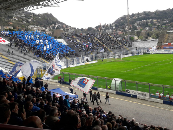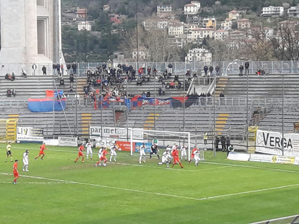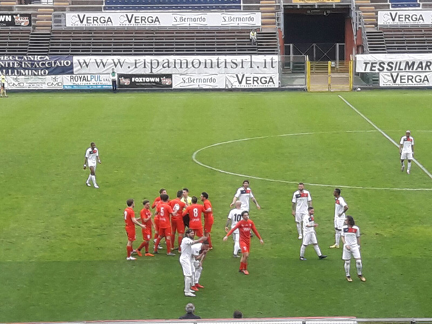 indenne dal Sinigaglia di Como, ma che non chiude i conti con i lariani in 10 per oltre un’ora. Non sono bastati oltre 3000 spettatori per spingere alla vittoria il Como contro la capolista Gozzano che ha tenuto meglio il campo, ma non è riuscita a trovare il guizzo vincente quando i padroni di casa sono rimasti in inferiorità per uno sciagurato manrovescio di Anelli su Segato avvenuto a centrocampo sotto gli occhi dell’arbitro. La gara che valeva la serie C ha visto il Gozzano dimostrare sul campo di essere superiore ai lariani che non sono mai riusciti ad esprimere un gioco corale e solo nei minuti finali hanno messo in sofferenza la capolista. Como che si presenta con un 3-5-2 che dovrebbe dargli la supremazia del centrocampo, ma in realtà sarà il Gozzano con Guitto, Segato e Perez a menare le danze, con Evan’s schierato a sorpresa al posto di Messias pronto ad incidere sulla fascia , mentre dall’altro lato Petris ha licenza di spingere. Cosi’ Gilli non correrà quasi mai pericoli protetto da un ottimo Gigli e dal rientrante Emiliano. Il Como prova a spingere sulla fascia con Bovolon e Di Nuzzo, ma senza costrutto. Così il caldo pubblico di Como (che aveva in curva ospiti del club gemellati di Lucerna e Latina), rimane subito ghiacciato dalla prestazione senza paura degli uomini di Gaburro. Al 6’ Evan’s manda alto di testa. Como che non riesce ad elaborare gioco ed il pallino è sempre degli ospiti: al 13’ Lunardon pesca Evan’s in proiezione offensiva, ma l’assist dell’esterno è respinto dalla difesa. Sempre il francese pericoloso: lo serve Perez, ma l’attaccante scivola al momento del tiro. Al 18’ la miglior occasione: da Emiliano in area per Capogna che di testa manda centralmente da buona posizione. Si vede finalmente il Como al 23’: tiro velleitario di Buono che finisce sul fondo. Al 31’ nuova occasione ospite: Cicconi perde palla nella propria tre quarti campo, Guitto è lesto a rimettere la sfera in area, ma tutti gli attaccanti sono in ritardo. Al 33’ l’episodio che potrebbe cambiare le sorti del match: Anelli, dopo un contrasto, colpisce con un pugno Segato a palla lontana. Rosso diretto con pubblico imbufalito, ma le immagini delle Tv locali dimostrano che il difensore ha colpito direttamente e senza motivo il centrocampista che aveva già avuto degli scontri vivaci con Sentinelli. Con il Como in dieci, Andreucci toglie Buono e mette D’Aiello, un difensore. Il Gozzano cerca di forzare i tempi: sempre Evan’s sulla fascia Capogna alza la mira di testa (38’). Al 43’ finalmente uno spunto del Como : Cicconi salta tre avversari, ma viene steso al limite dell’area. La punizione è senza esito. Nella ripresa il Como arretra il suo raggio d’azione. Il Gozzano non sa però sfruttare la superiorità numerica per chiudere il match ed il campionato. Ci prova Evan’s (51’ alto), poi al 67’ lo stesso esterno francese ostacola Perez al momento del tiro. Solo nel finale il Como si riaffaccia in area: errore di Petris, palla a Gentile, ma Emiliano salva (l’arbitro però aveva fischiato un off side). Nel recupero due mischie fanno venire i brividi ai tifosi novaresi al seguito, ma il Como, spuntato , con poco gioco e pure stanco, non sfonda. E così a tre gare dalla fine il campionato rimane aperto. Gozzano con più 2 sul Como e più 4 sulla Caronnese (2-1 al Borgaro), che tra 15 giorni affronterà sul proprio terreno proprio la capolista. Nelle altre gare dramma per Varese e Casale: le due nobili decadute sconfitte a Seregno e Arconate sono sempre più nei play out. Il Borgosesia pareggia in rimonta 2-2 con il Castellazzo con reti di Vitali e Pagnotta. Chieri e Pro Sesto oramai nei play off.