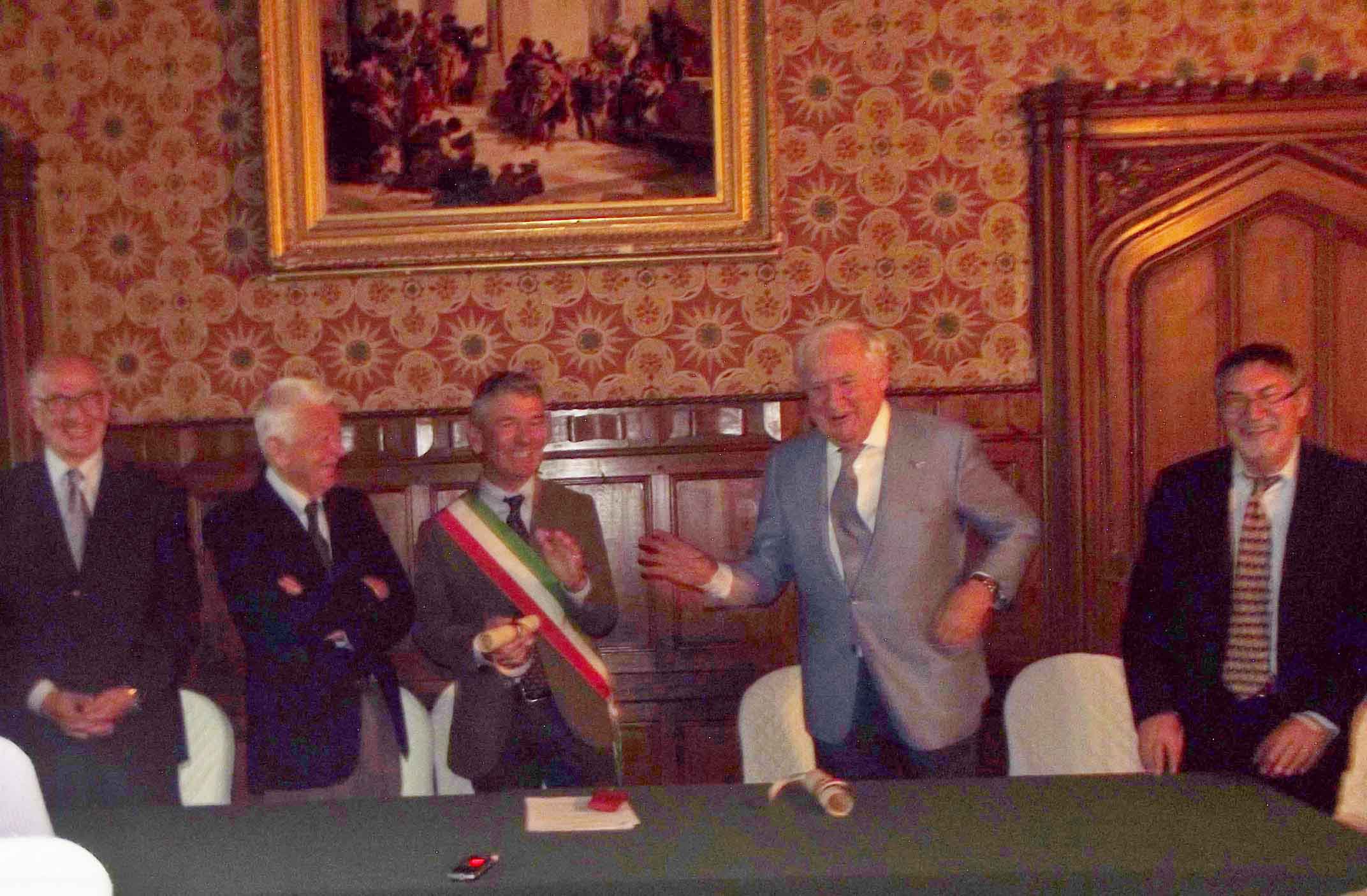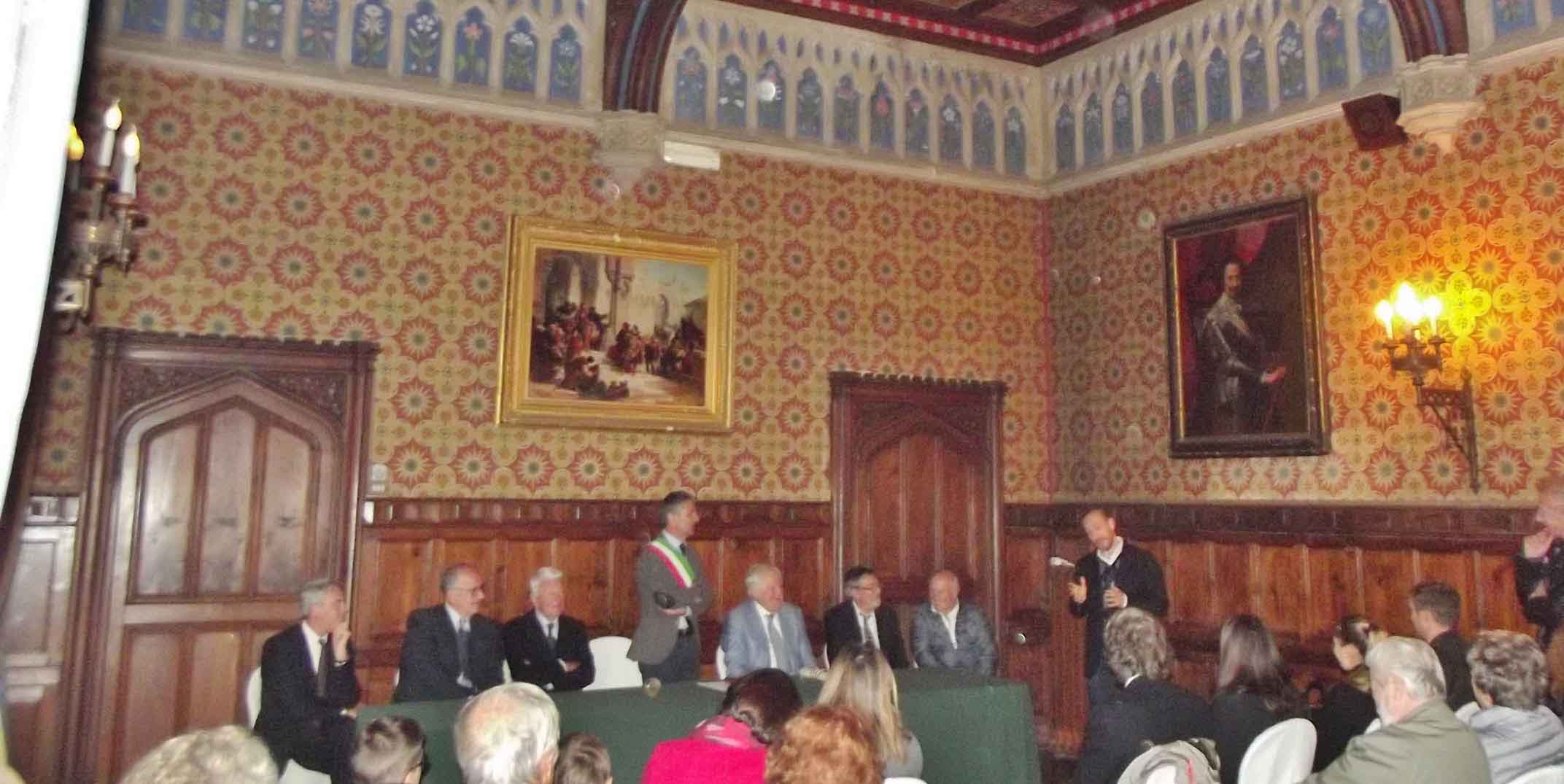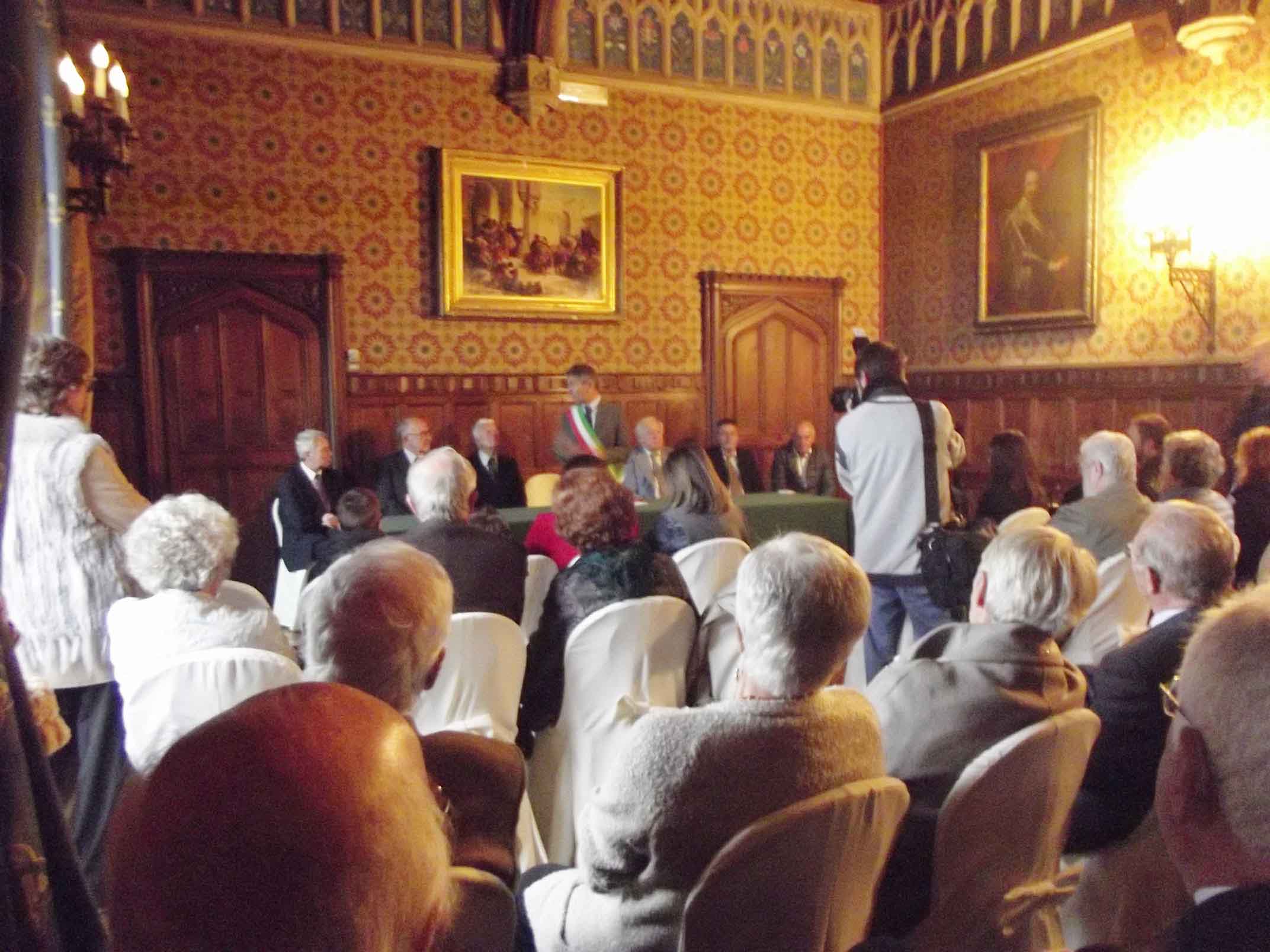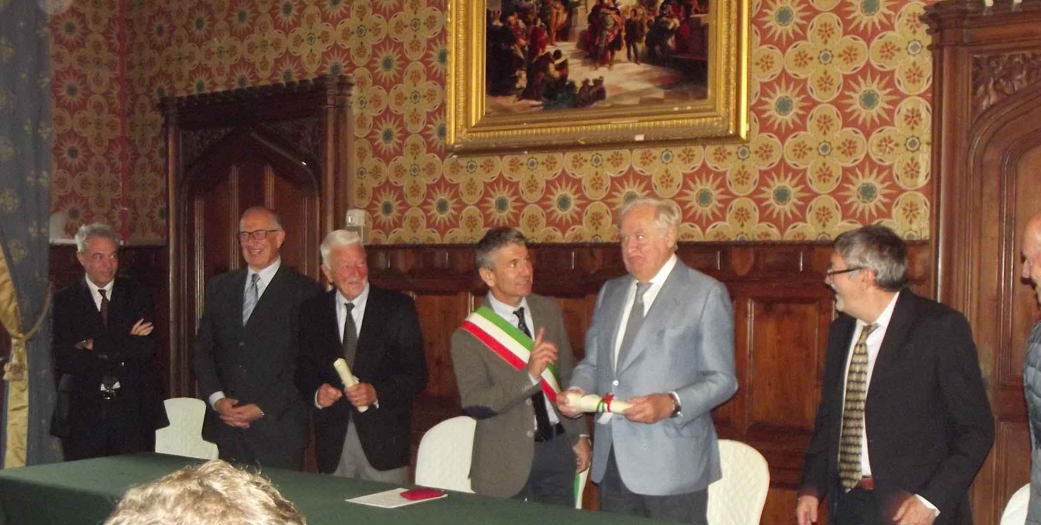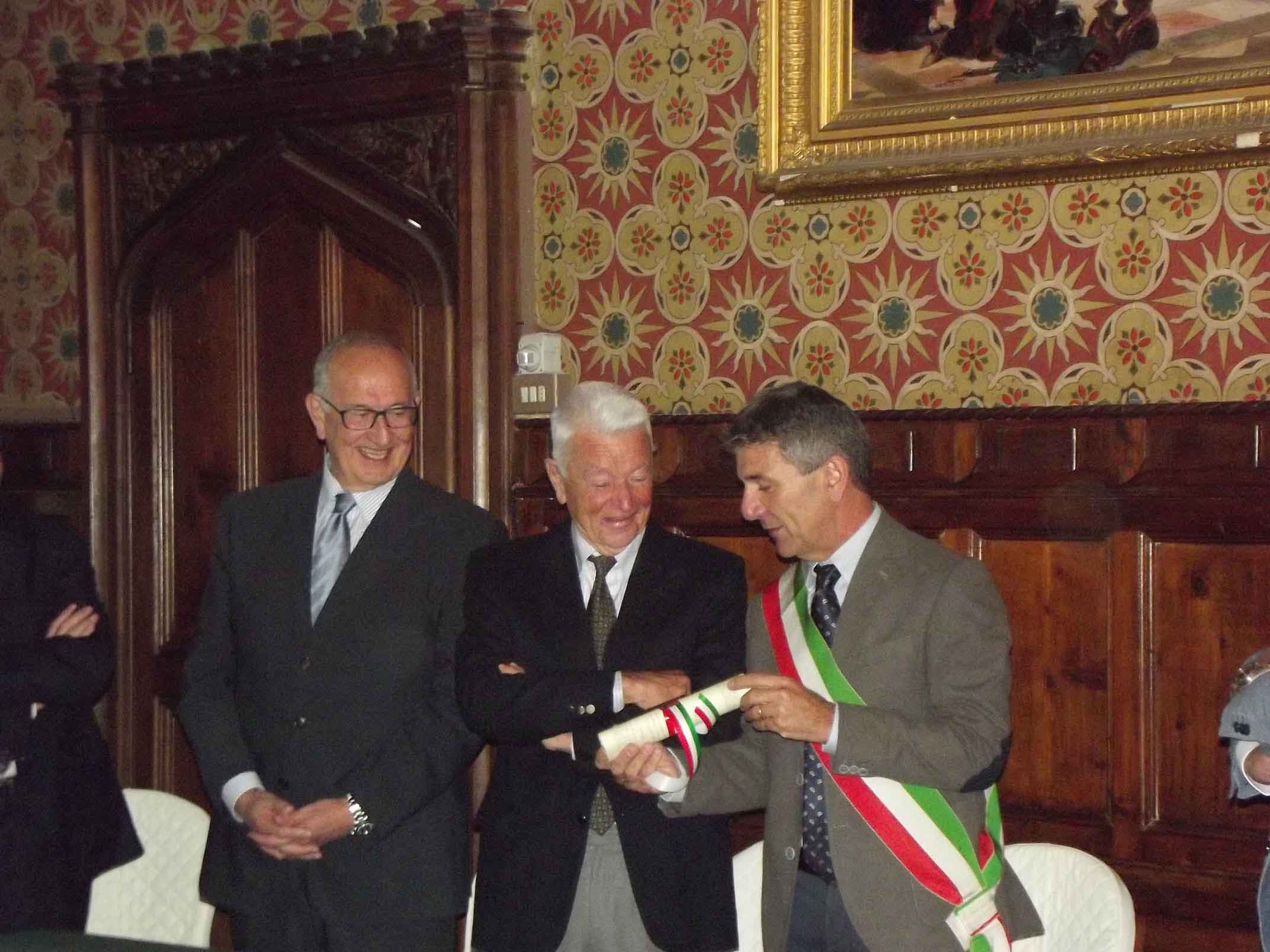 OLEGGIO CASTELLO-11-10-2016- Oleggio Castello ha due nuovi cittadini onorari. Roberto Romerio Bonazzi, storico farmacista del paese e l’industriale Giuseppe Miglio che sponsorizza borse di studio per gli studenti delle scuole sono stati insigniti della cittadinanza domenica pomeriggio nella location del castello Dal Pozzo. Renzo Norbiato sindaco ha spiegato le motivazioni:. “ Cavaliere Del Lavoro Dott. Giuseppe Miglio: “Per l’attenzione dimostrata alla nostra comunità e in particolare ai più giovani. Attenzione che si è manifestata nella volontà di trasmettere alle generazioni future il sapere, attraverso il supporto diretto e indiretto agli studenti Oleggesi”. Dott. Roberto Romerio Bonazzi: “Per il suo esempio di vita ispirata ai fondamentali valori umani della solidarietà e dell'aiuto al prossimo, per l’esemplare impegno, per il costante interessamento e la disponibilità dimostrata verso la comunità degli Oleggesi”. Ci sono poi state le testimonianze di due Oleggesi, il Dotttor Narciso Brunoni e il Dottor Luca Fazio che hanno motivato, sulla base delle loro esperienze, le ragioni della riconoscenza da parte della comunità a Miglio e Romerio .La cerimonia si è conclusa con la consegna simbolica della cittadinanza onoraria, un discordo dei due "nuovi Cittadini" e un brindisi. (MA RO)