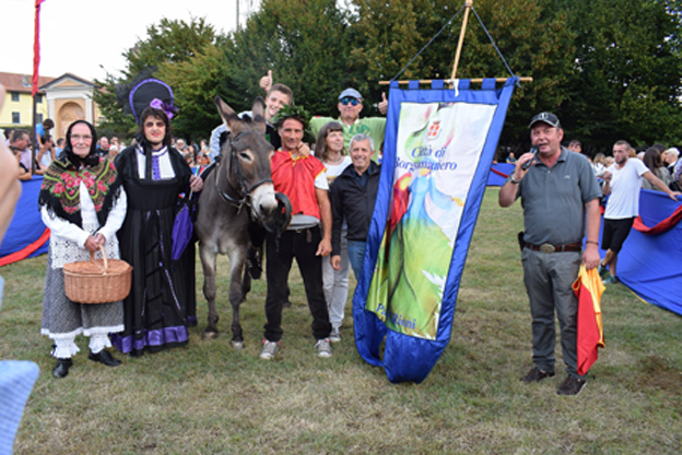 BORGOMANERO - 02-09-2018 - Corona d'alloro al fantino Denis Del Duca che su "Bandito" ha vinto Palio degli asini organizzato nel secondo giorno della grande festa dell'uva. Oggi pomeriggio, domenica 2 settembre, nel parco di Villa Marazza, sono accorsi tanti borgomaneresi per tifare i propri colori. L'edizione 2018 se l'è aggiudicata il Rione San Gottardo. Il primo palio fu disputato nel 1976. Il fantino aveva già vinto nel lontano 1988. Aò secondo posto Simone Allemani per Santa Cristinetta su Scilostro, terzo gradino del podio per Cosimo Stroescu del San Rocco su Ribelle e quarto Diego Bertona del rione Vergano. La manifestazione è stata preceduta da da giochi medievali e corteo dei rioni con la milizia di Bannio Alzino che ha sparato a salve dei colpi di fucile. Sempre in giornata l'associazione borgomanerese de "I miserabili" ha esposto tante auto storiche.