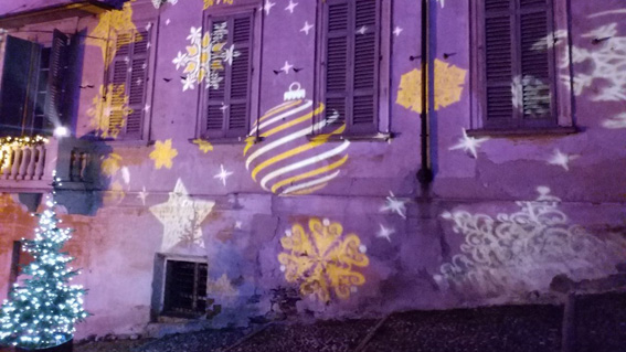 ORTA SAN GIULIO - 06-01-2018 - Sta scadendo il tempo per ammirare lo splendido allestimento delle cosiddette "luci d'autore "installate dal Comune di Orta sulla salita della Motta che dall'omonima piazza conduce alla chiesa parrocchiale di Maria Vergine Assunta e da lì al Sacro Monte, così come alla rotonda della sp 229 dove sono "cadute" tante stelle. Sulla facciata della chiesa ci sono delle renne e sulle pareti dei palazzi laterali, da una parte Babbo Natale che soffia baci di stelle e dall'altra palle di Natale, oltre ai sempre presenti fiocchi di neve ghiacciata. Seppur la passeggiata sia sempre suggestiva, queste immagini in movimento la rendono ancora più affascinante.