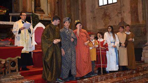 BORGOMANERO - 07-01-2019 - Tanta partecipazione ieri pomeriggio, domenica 6 gennaio, per la festa sacra e profana dell'Epifania. Alle 15.30 in collegiata c'è stata la rappresentazione dei Re Magi organizzata dai ragazzi dell'oratorio, dal coro Voci del Borgo e dal Gruppo chiricchetti, coordinati da Tommaso Sabatino a cui è seguita la benedizione dei bambini da parte del prevosto Piero Cerutti e don Marco Borghi. Uscendo, sul sagrato della chiesa, l'arrivo della befana alias Paolo Mandelli che ha fatto giocare i tanti bambini accompagnati dai propri genitori. La Pro Loco della presidente Stefania Zoppis ha preparato cioccolata calda, panettone e offerto tante caramelle a tutti. All'evento conclusivo de “Il Natale che non ti immagini” in rappresentanza del Comune ha partecipato l'assessore Francesco Valsesia.