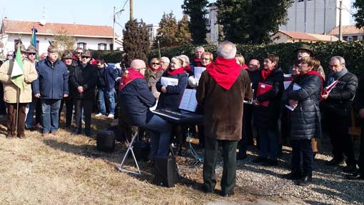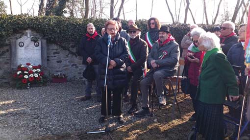 CRESSA - 24-02-2019 - Si è svolta questa mattina, domenica 24 febbraio, a Cressa la consueta commemorazione dei partigiani Ernesto Mora ed Enzo Gibin. Il corteo, accompagnato dalla banda musicale "La Cavagliese" è partito dal circolo Arci per giungere al cippo di via Martiri della Libertà dove c'era il coro "Pizio Grata" di Fontaneto d'Agogna ad attenderli. "Siamo in tanti e mi auguro che il prossimo anno lo saremo ancora di più - ha detto il presidente dell'Anpi di Borgomanero Gabriele Caione - sono felice che siano presenti i sindaci del circondario, le Anpi della Provincia di Novara e diverse della Regione Piemonte con i loro gonfaloni, oltre alle famiglie delle vittime Mora e Gibin che con il loro sacrificio si sono opposti alla dittatura". Caione e il sindaco di Cressa Gino Tacca hanno introdotto l'ospite d'eccezione, ovvero la presidente nazionale dell'Anpi, alessandrina, ma nativa di Novara, Carla Nespolo. "Dobbiamo dare memoria a chi si è sacrificato per noi. E' bello vedere anche giovani tra di noi. Questa è una giornata di gioia perchè siamo in tanti, ma anche di dolore per la storia di questi due ragazzi appena ventenni - ha detto Carla Nespolo - molti di quei ragazzi trucidati non avevano un'idea politica, ma lottavano per il valore della libertà perchè la lotta per la Resistenza è stata una lotta per la democrazia. Il nostro progetto è d'intervistare ancora tutti i partigiani viventi e di aprire anche una sezione a Ozieri, l'unica Provincia ancora priva".