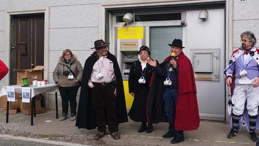 FONTANETO D'AGOGNA - 24-02-2019 - Un'edizione da record quella del 2019 del Carnevalgustoso di Fontaneto. "Abbiamo venduto tutte le tazze, ne avevamo 600 - ha detto il presidente della Pro loco Eraldo Teruggi al termine della manifestazione - grazie a tutti per la numerosa partecipazione". A salutare anche Poldo del Carnevale di Suno svoltosi domenica scorsa e le maschere del paese, il Pajin e la Pajina, che hanno aperto la sfilata e accompagnato la banda musicale di Caltignaga e i carri dei bambini delle elementari da piazza Conciliazione a piazza Unità d'Italia dove li attendevano i ricchi banchetti con specialità locali, dolci e salate, oltre a vino a volontà. Presente anche il sindaco Maria Antonia Platini e l'ex primo cittadino Adriano Fontaneto.