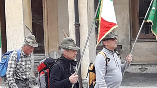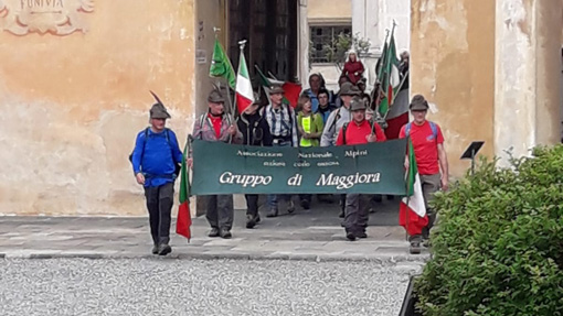 Emozionante, come sempre, è stato l'attraversamento del centro storico di Varallo e la salita al Sacro Monte in ordinato corteo, aperto dallo striscione del gruppo Ana di Maggiora, i gagliardetti dei gruppi Ana di Maggiora, Borgomanero, Gargallo, Gozzano (cui si è aggiunto al Sacro Monte quello di Ghiffa), con bandiere tricolori portate da quattro camminatrici, al suono degli inni degli Alpini.