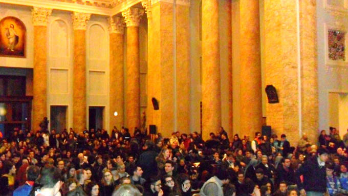 BOCA – 16-04-2019 -Centinaia di giovani da tutta la Diocesi di Novara al Santuario di Boca per la Veglia delle Palme. Le previsioni meteo avverse, hanno costretto gli organizzatori a trasferire la Veglia, inizialmente in programma nella città di Omegna, a Boca ma il cuore della proposta è rimasto lo stesso: un momento per i giovani della Diocesi di preghiera e riflessione guidato dal vescovo e dal direttore della pastorale giovanile don Marco Masoni. Monsignor Franco Giulio Brambilla li ha invitati a rispondere alla domanda “Come avverrà?”, che scaturisce dal tema della Giornata mondiale della gioventù 2019 “Ecco la serva del Signore; avvenga per me secondo la tua parola”, guardando alla nostra vita con “speranza viva” per essere “cercatori” di quella felicità che solo Dio può donarci. La veglia è stata preceduta nel pomeriggio da una tavola rotonda, moderata dal giornalista di Radiocor Il Sole 24 Ore Andrea Fontana, sul tema “Cercatori di felicità”, con ospiti il gesuita Emilio Zanetti e l’atleta paraolimpico Daniele Cassioli. Il Santuario di Boca ha accolto l’immagine della Madonna del sangue di Re, icona-simbolo del triennio di pastorale giovanile, portata dai ragazzi di Varallo Sesia, dove si era tenuta la Veglia 2018.