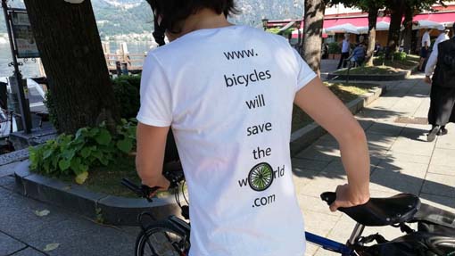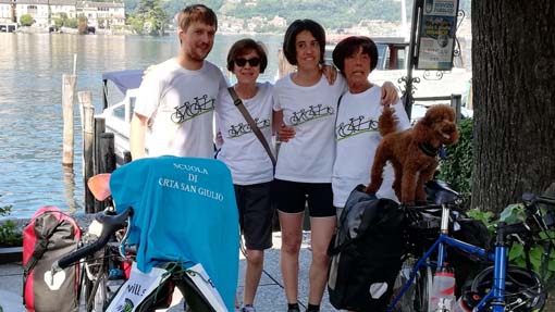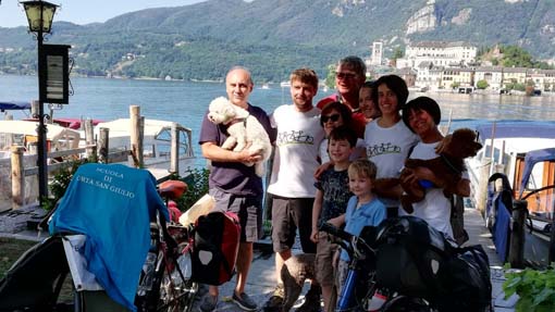 ORTA SAN GIULIO - 14-07-2019 - Un sogno che si avvera, un’avventura che inizia…così ieri, sabato 13 luglio, Arianna Casiraghi, Daniel Rayneau-Kirkhope e la loro cagnolina Zola sono partiti da Orta San Giulio per diffondere il loro messaggio: "Bicycles will save the world".