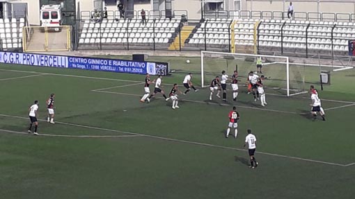 PRO VERCELLI (4-3-3): Moschin 5; Franchino 6, Masi 6 (dall’87’ Foglia), Auriletto 5.5 (dal 60′ Benedetti 6), Quagliata 5.5 (dal 70′ Volpe 5.5); Graziano 6.5, Schiavon 6, Mal 4.5 (dal 60′ Comi 5); Azzi 5, Cecconi 5, Rosso 5.5 (dal 70′ Della Morte 5). A disposizione: Saro, Erradi, Bani, Grossi, Romairone, Varas, Merio. All. Gilardino: 5.5