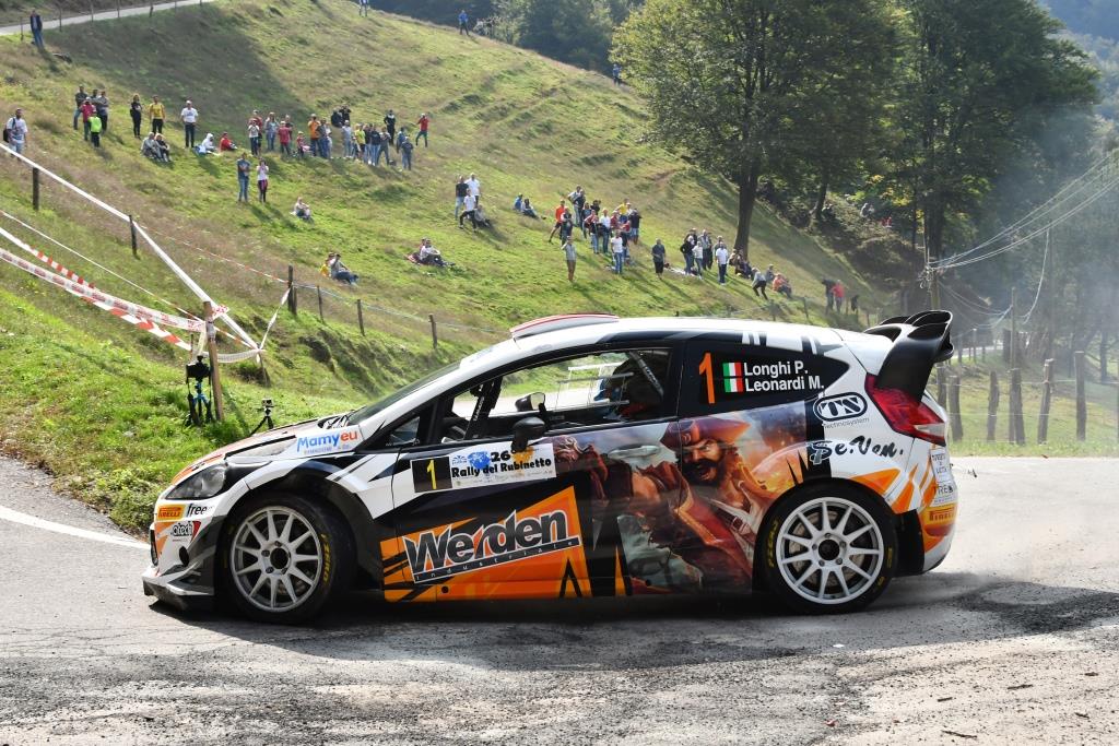 La seconda posizione è stata ad appannaggio di Piero Longhi e Massimo “Swilly” Leonardi, su Ford Fiesta Wrc by Tamauto; gli indiscussi idoli locali – e la piazza d’arrivo di Borgosesia lo ha testimoniato con una ovazione generale -si sono tolti lo sfizio di siglare l’ultima prova speciale sferrando la zampata utile per l’argento conquistato con merito ma non senza fatica visto che alle loro spalle un nutrito gruppo di R5 ha dato via ad una lotta senza eguali per il podio. Tre, oltre a Longhi, erano in lizza per i due posti dopo Miele: Caffoni, Bottarelli e Pizio. A suon di temponi è emerso il duo bresciano Luca Bottarelli e Walter Pasini (Skoda HK) che ha sprintato terzo sui comunque bravi locali Mattia Pizio- Monica Rubinelli (id. Tamauto), confermatisi ad alti livelli. Non ha visto invece il traguardo l’equipaggio Caffoni-Minazzi per aver commesso un piccolo quanto fatale errore nel corso della Ps8: nel rimettersi dritto dopo un testacoda ad un tornante, il duo della Skoda-Balbosca è entrato in un buco della strada situato all’interno di un tornate che gli ha letteralmente sfilato la gomma dal cerchio. Quinto posto per i fratelli valsesiani Ivan e Marina Carmellino che sono riusciti a mettere da parte i fantasmi del Lana (uscirono di strada) ritrovando nella seconda metà di gara anche tempi decisamente di valore.