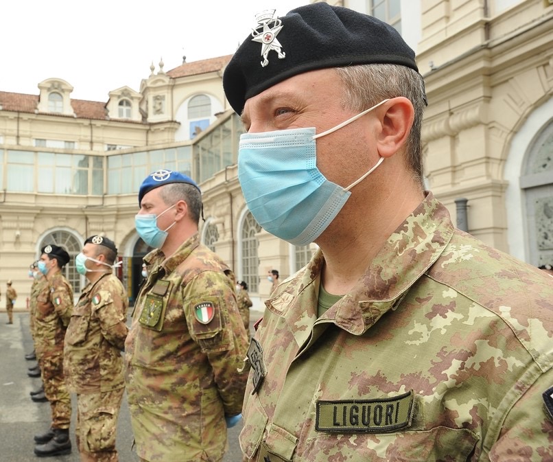 in ferma annuale del Corpo sanitario dell’Esercito e dell’Aeronautica Militare destinati alle Residenze sanitarie assistenziali (Rsa) del Piemonte, sono stati accolti questa mattina nell’aula magna del Comando per la Formazione e Scuola di Applicazione dell’Esercito, a Torino, dal generale di Divisione Salvatore Cuoci, comandante dell’Istituto di formazione, dal commissario straordinario per l’emergenza Covid-19 Vincenzo Coccolo e dall’assessore alla Sanità della Regione Piemonte, Luigi Genesio Icardi, alla presenza del comandante della Brigata alpina Taurinense generale Davide Scalabrin, e del colonnello Fabio Zanichelli in rappresentanza dell’Aeronautica Militare.