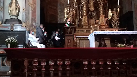 BORGOMANERO - 09-12-2020 - La XXXII esima edizione del premio "Borgomanerese dell'anno" che era in programma lo scorso 24 ottobre a Villa Marazza e rimandata causa imminente innalzamento delle misure restrittive causate dalla pandemia da Coronavirus, si è svolta martedì 8 dicembre in collegiata, un luogo ampio per poter ospitare tutti. La giornata è stata aperta da don Piero Cerutti con un momento di preghiera con la comunità.