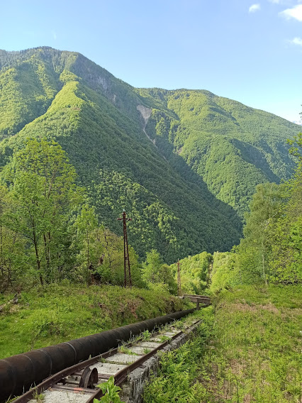 Anche questo è un punto panoramico superbo, soprattutto verso sud e verso ovest. Un fresco vento del nord riduce la pausa e, in tre quarti d’ora fra andata e ritorno, scendiamo a Carvirone dove pranziamo cercando fra le baite un riparo dal vento Subito sotto le baite, in direzione nord – ovest, prendiamo il bel sentiero che scende nel ramo principale della Valle dell'Isorno attraverso un bellissimo bosco di faggi. In meno di un’ora siamo alla centrale di Cippata, 950. Qui, di comune accordo, rinunciamo ad Aulogna e alla risalita dal Ponte del Diavolo, passiamo in prossimità della centrale, attraversiamo l’Isorno e, lungo una sterrata, risaliamo di qualche decina di metri fino alla strada asfaltata che scende dall’alta valle.